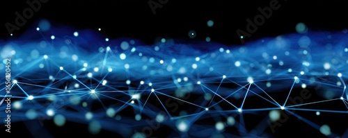 Fototapeta - Abstract Blue Digital Background Virtual Space Digital Art Cyber Environment Wide View Connectivity Concept