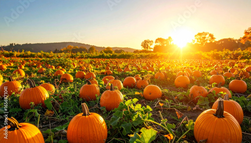 Harvest Scene with Pumpkins and Autumn Atmosphere