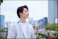 休日の公園でリラックスしてスマートフォンを操作する私服の日本人男性