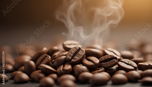 Fototapeta - Frische Kaffeebohnen mit aufsteigendem Dampf