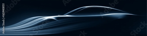 Futuristic car silhouette with flowing light effects and dynamic motion