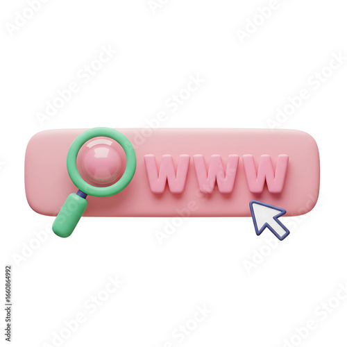 Fototapeta - Cute internet address search bar with magnifying glass and cursor icon