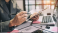 >Naklejka na meble>Audit concept,Bookkeeper or financial inspector and secretary making report Financial Planning Report in Spreadsheet .Internal revenue Service inspector checking financial document vintage tone.