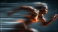 African American woman running with speed motion blur. Sprinter in action for sports ads. Healthy lifestyle, fitness concept.