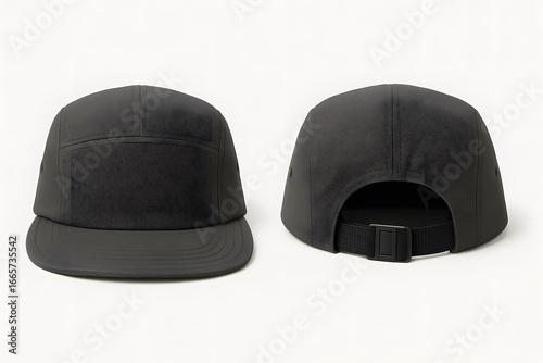 Fototapeta - Charcoal Grey 5 Panel Baseball Cap Mockup Front and Back View – Minimalist Camp Hat Template for Fashion, Outdoor, and Branding