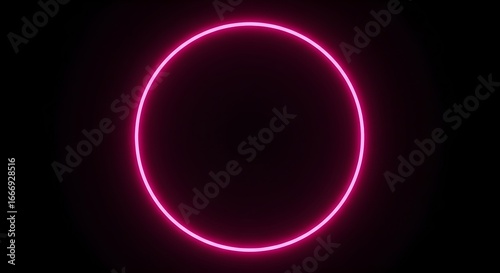 Fototapeta - Pink neon circle glows on black. Minimal, abstract backdrop for posters, branding, presentations.
