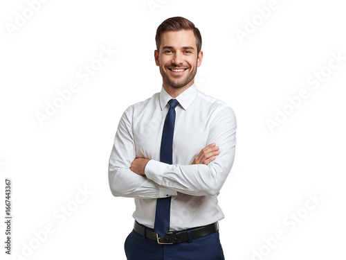 Confident businessman with a charming smile and arms crossed presenting a professional isolated