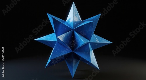 >Naklejka na meble>A striking, stellated geometric form, brilliant cobalt blue, positioned against a deep black background, showcasing intricate facets and a sense of depth.