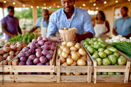 Fototapeta - Variedad de vegetales frescos en un mercado agrícola en un día soleado