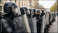 Close Up of Riot Police Forming Blockade with Shields and Helmets in Urban Street