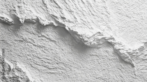 Fototapeta - Aerial view of a stark white textured landscape with rough terrain and jagged edges visible