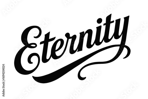 Eternity bold vintage calligraphy smooth curves balanced composition clear readable letters consistent style none diagonal decorative composition clean white background vector look high.