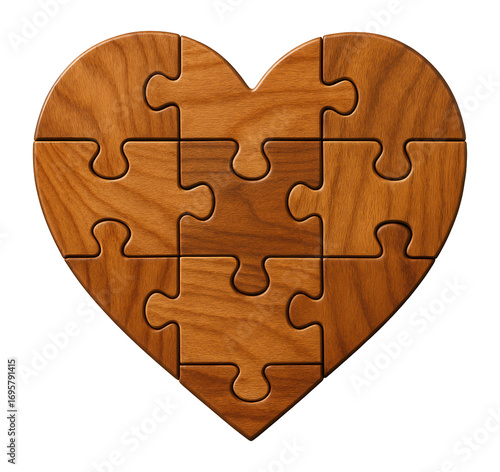 Fototapeta - Heart-shaped wooden puzzle with interlocking pieces