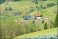 Charming rural landscape with solar panels in a tranquil valley surrounded by rolling hills and farmhouses under a clear blue sky