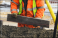 Fototapeta - Close-up of construction worker leveling concrete and placing edging pin kerb on construction site