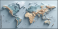 Trójwymiarowy widok lądów i oceanów wykonany w kolorach stonowanych, pastelowych.