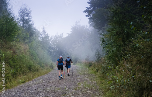 Fototapeta - Biegacze i rowerzyści na górskich szlakach
