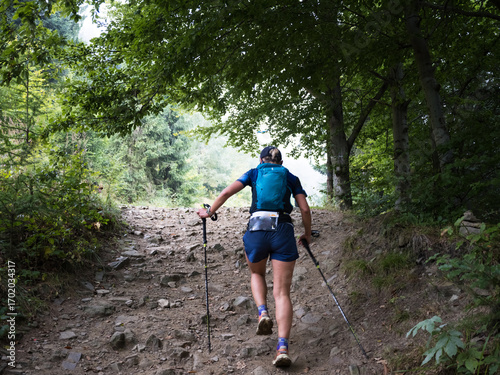 Fototapeta - Biegacze i rowerzyści na górskich szlakach