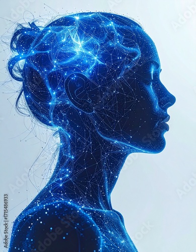 Fototapeta - Silhouette eines Kopfes gefüllt mit leuchtenden neuronalen Linien und