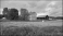 >Naklejka na meble>A yellow wooden house stands beside a large barn on a field with ripe crops. Trees show autumn colors under a partly cloudy sky, creating a peaceful rural scene.