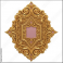 Ornate golden decorative emblem design with intricate swirls and geometric center