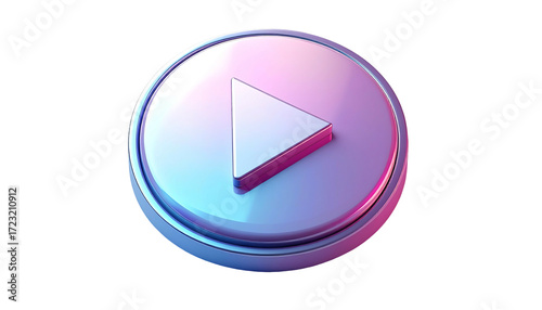 A 3D rendered pastel pink and blue circular button featuring a prominent white play symbol