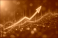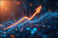 Glowing orange arrow graph shows upward trend on abstract digital network background. Data analytics chart displays positive growth in cyber space. Futuristic technology concept illustration.