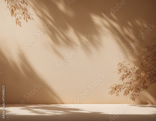 >Naklejka na meble>abstract beige textured wall background with soft blurred shadows of tree foliage natural organic pattern for minimalist product display mockup summer season concept design neutral tone backdrop fo