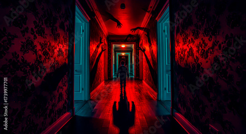 Fototapeta - Whispers behind the doors: wraiths lurking in the dark