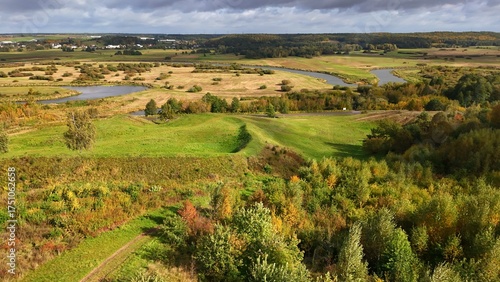 Fototapeta - Łomżyński Park Krajobrazowy Doliny Narwi, meandry rzeki Narew, stanowiąca obszar chroniony. Łomża, Województwo podlaskie, Polska, Europa