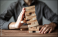 >Naklejka na meble>Businessman holds the model of business, made from wood blocks. Alternative risk concept, business plan and business strategy. Insurance concept.
