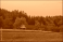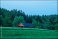 Rustic cottage on a foggy hill, surrounded by mist and towering evergreen trees cottage in mist, atmospheric scene