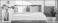 >Naklejka na meble>Close-up of double wooden bed with bedding, pillows and blanket against white wall in a bright sunny bedroom interior. Two green plants standing beside. Panorama. Real photo.