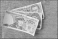 Old Polish banknotes. Brown wooden desk background.