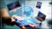 Fototapeta - View of a Businessman holding a Computer and devices displayed on a smartphone interface with international network - 3d render