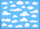 Different shape cartoon white clouds on blue background. Vector decoration element.