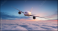 Fototapeta - Commercial airplane jetliner flying above dramatic clouds in beautiful sunset light. Travel concept.