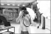 Fototapeta - Portrait of young brunette photographer man shooting model with professional camera in studio