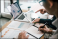 >Naklejka na meble>Business partnership coworkers using a tablet to analysis graph company financial budget report and cost work progress and planning for future in office room.