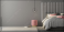 Fototapeta - Bedroom with large gray bed and pink pouf. 3d render