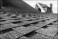 Fototapeta - selective focus of grey shingles on rooftop of building