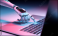 Robotic hand pressing a keyboard on a laptop 3D rendering