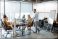 Fototapeta - Group of diverse colleagues working on the computers in the modern office or coworking space, wide intreior view