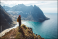 Man stand on cliff edge alone enjoying aerial view backpacking lifestyle travel adventure outdoor vacations