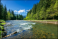 >Naklejka na meble>nature scene with mountain river. spring vacation in sunny valley of synevyr national park, ukraine. grassy meadow on the shore, ridge in the distance. beauty of tranquil ecology environment