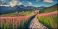 Fototapeta - mountain landscape, Tatra mountains panorama, Poland colorful flowers and cottages in Gasienicowa valley (Hala Gasienicowa), summer