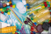 Fototapeta - Disposable single use plastic objects such as bottles, cups, forks, spoons and drinking straws that cause pollution of the environment, especially oceans. Top view.