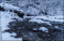 Fresh snow on rapids of Hewitts Creek after a snowstorm along Wilkins Walk Barrie Canada