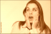 ragazza bionda con camicia bianca si porta le mani alla faccia e guarda lontano con aria meravigliata, isolata su sfondo chiaro