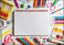 Back to school concept. Open notebook with school supplies